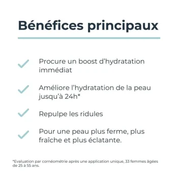 **Par rapport à l’Acide Hyaluronique de haut poids moléculaire également utilisé dans la formule.