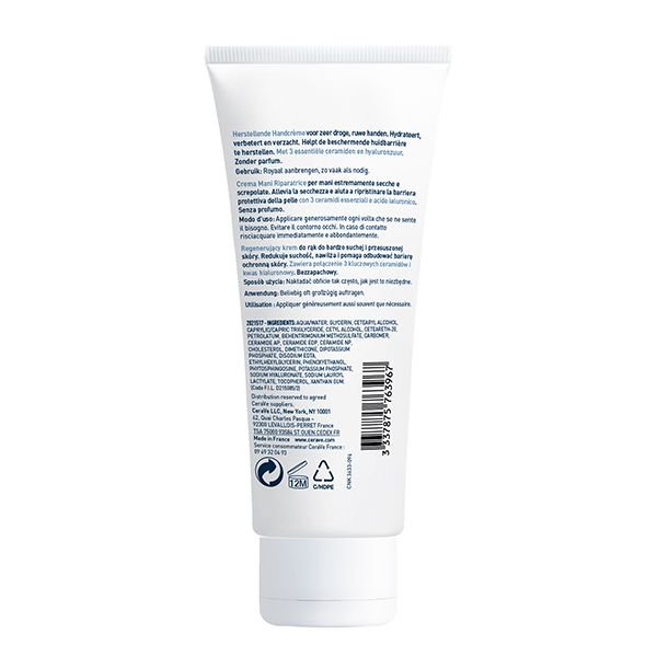 Développée avec des dermatologues, la Crème Mains Réparatrice CeraVe répare, apaise et hydrate intensément les mains sèches à très sèches. Aide à restaurer la barrière protectrice. Les mains sont douces et lisses.