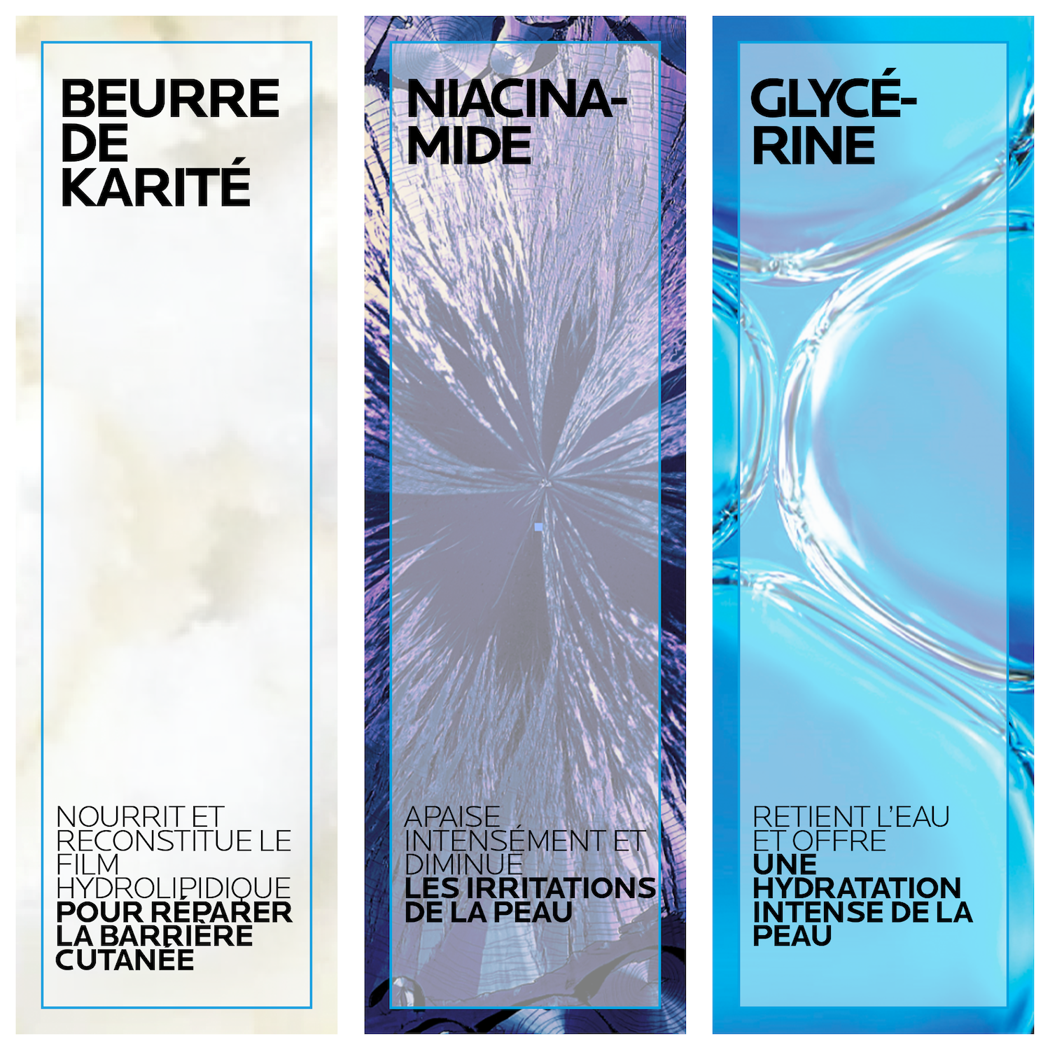 • Ingrédients Clés : Eau Thermale de La Roche-Posay pour apaiser | Beurre de Karité pour protéger | Vitamine B3 pour réduire la sensibilité | Glycérine pour hydrater.